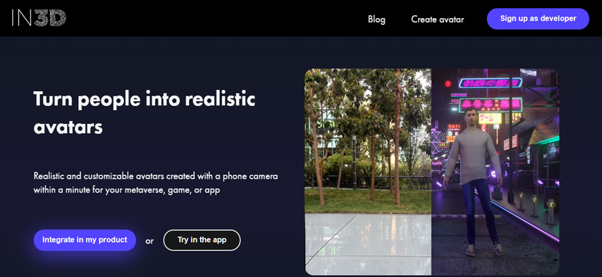 - Visit the in3D website to learn more about the platform, which allows you to create photorealistic avatars for metaverse, games, or apps using your phone’s camera.