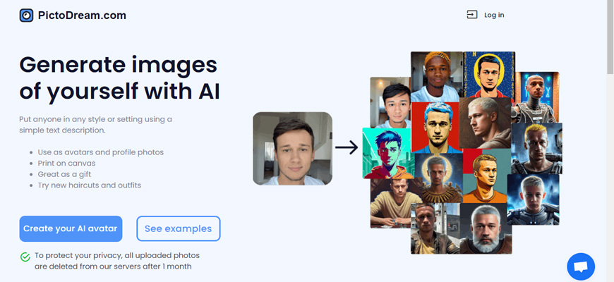PictoDream is a service that uses AI to generate images of a person or another individual in any style or setting based on a simple text description. It appears that the service is available for a fee of $9.99.